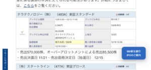 テラテクノロジー(483A)は補欠当選という、なんとも言えない結果となりました。